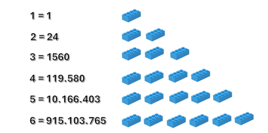 Zwei klassische 2 x 4 Klemmbausteine – wie sie gerade vor Ihnen liegen – lassen sich auf erstaunlich viele Arten miteinander verbinden.